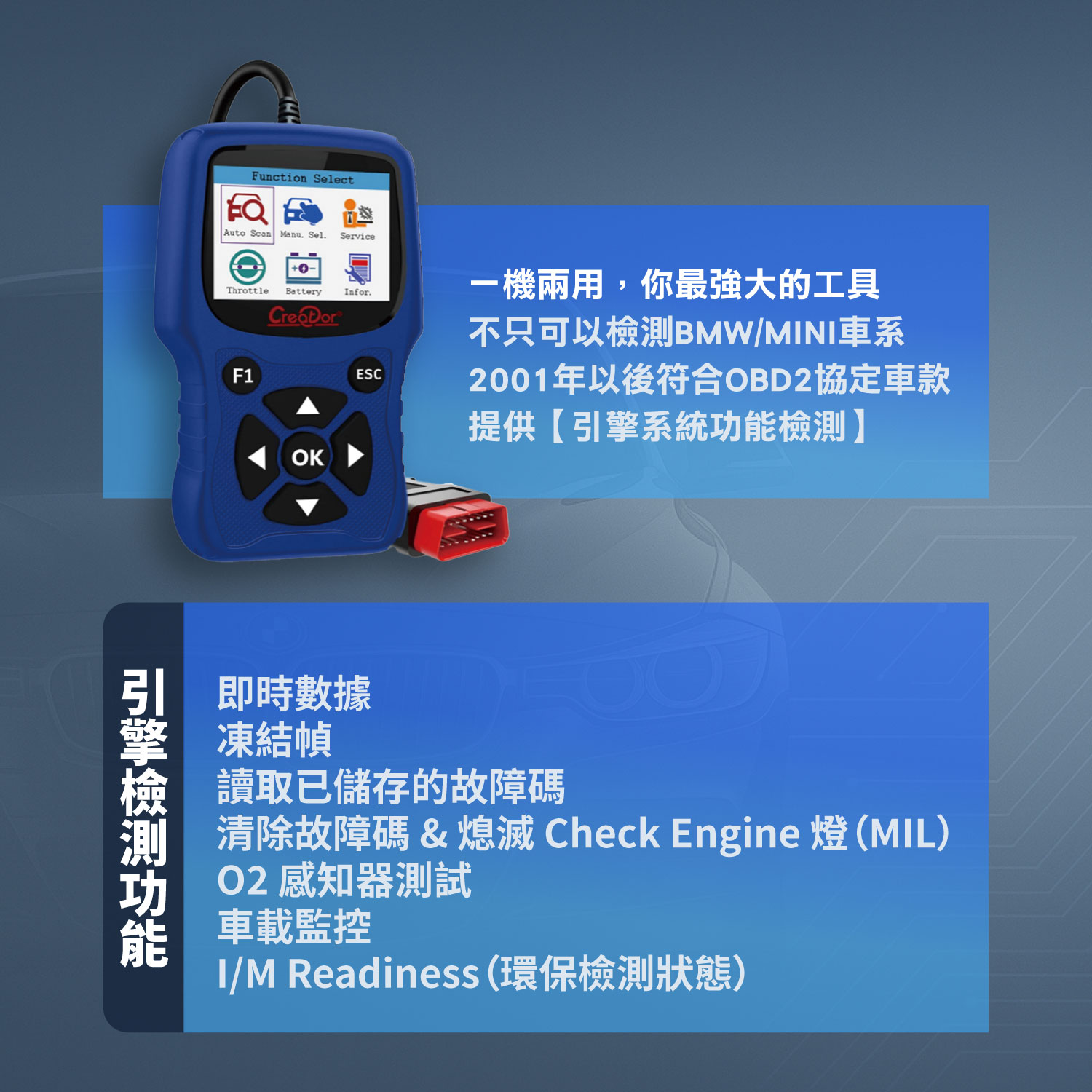 ⦿ 亦可作為 通用 OBD2 讀碼器 使用於其他品牌引擎系統。